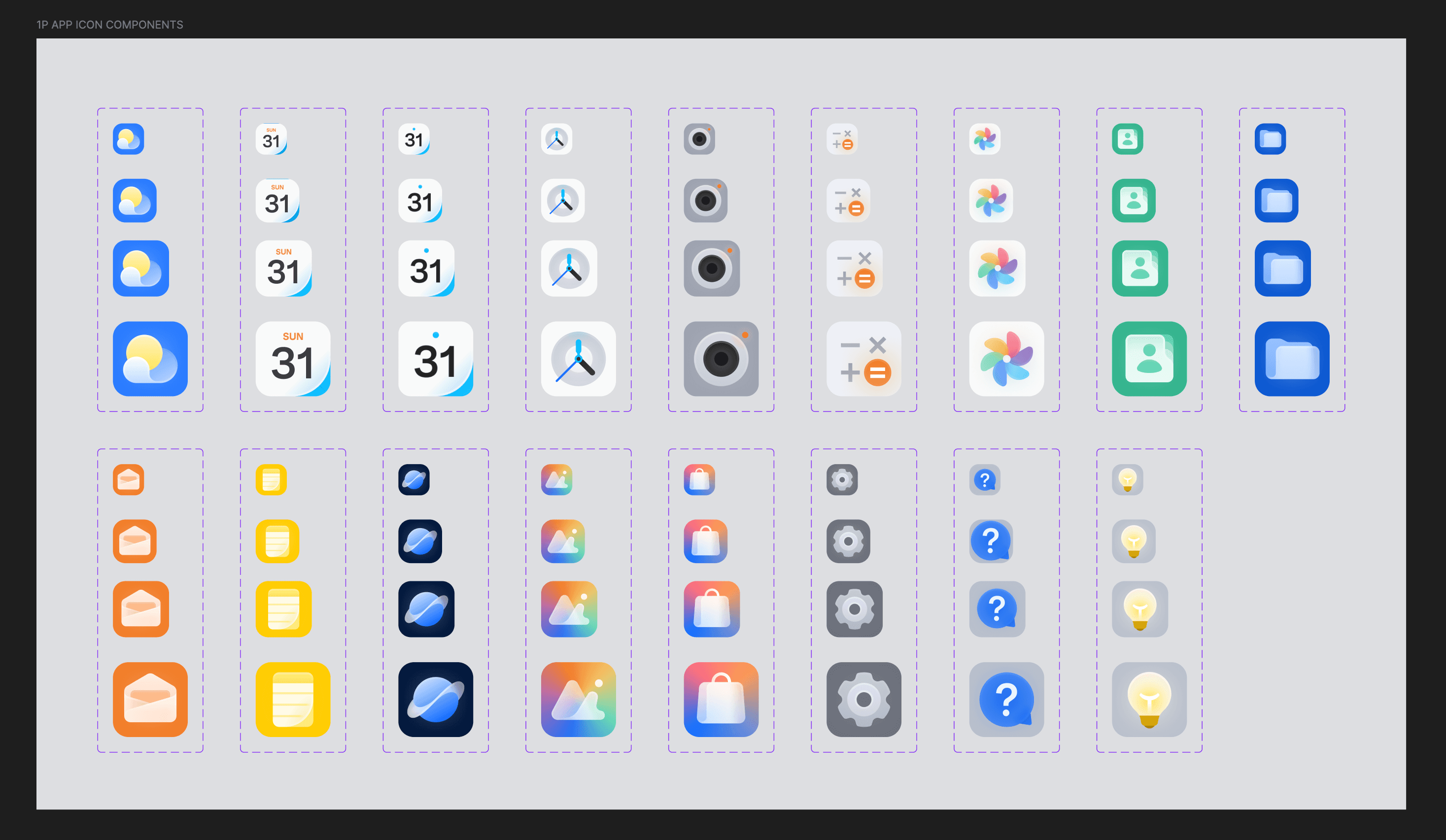 App- and feature-level iconography, illustrating how system assets scaled across product teams while maintaining visual cohesion.