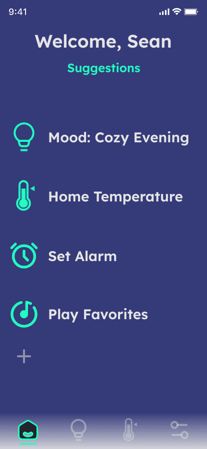 I produced a number of animated interfaces throughout the program, with my guiding project and final deliverable being Maestro, a smart home app designed to centralize and facilitate control of household devices.